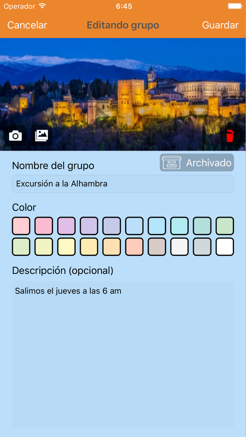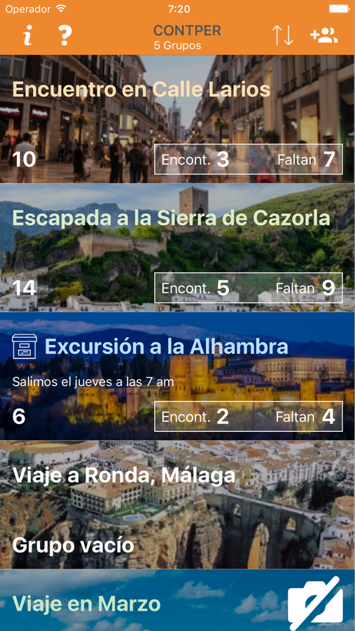 Aplicación que permite controlar grupos de elementos, normalmente grupos de personas. Cada grupo puede tener un nombre, fotografía y color asociado, y cada elemento tendrá su nombre, fotografía y teléfono. Pueden asignarse pequeñas notas tanto a grupos como a elementos. Los elementos tienen un estado, que tiene utilidad libre según la situación. En el caso de una excursión, puede indicar a qué personas se les ha llamado y han dado el visto bueno.