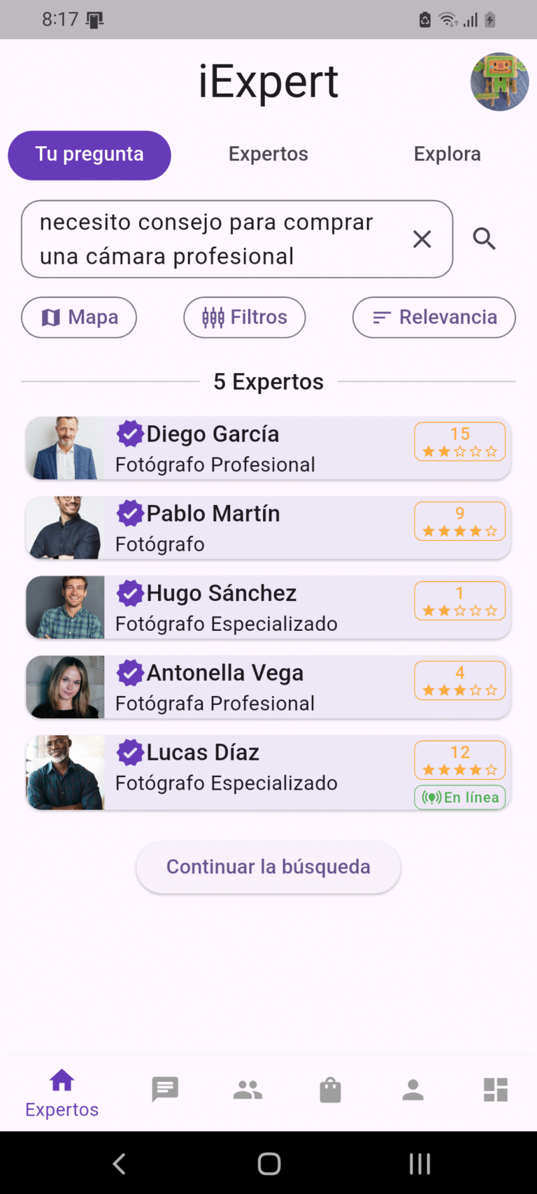 iExpert es una plataforma que conecta a usuarios con profesionales especializados en múltiples áreas, facilitando la contratación directa de servicios bajo demanda.