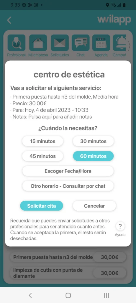 La plataforma de Wilapp permite a los profesionales de estos sectores gestionar su negocio de forma online. Los clientes pueden reservar citas con los profesionales de forma online, 24/7.